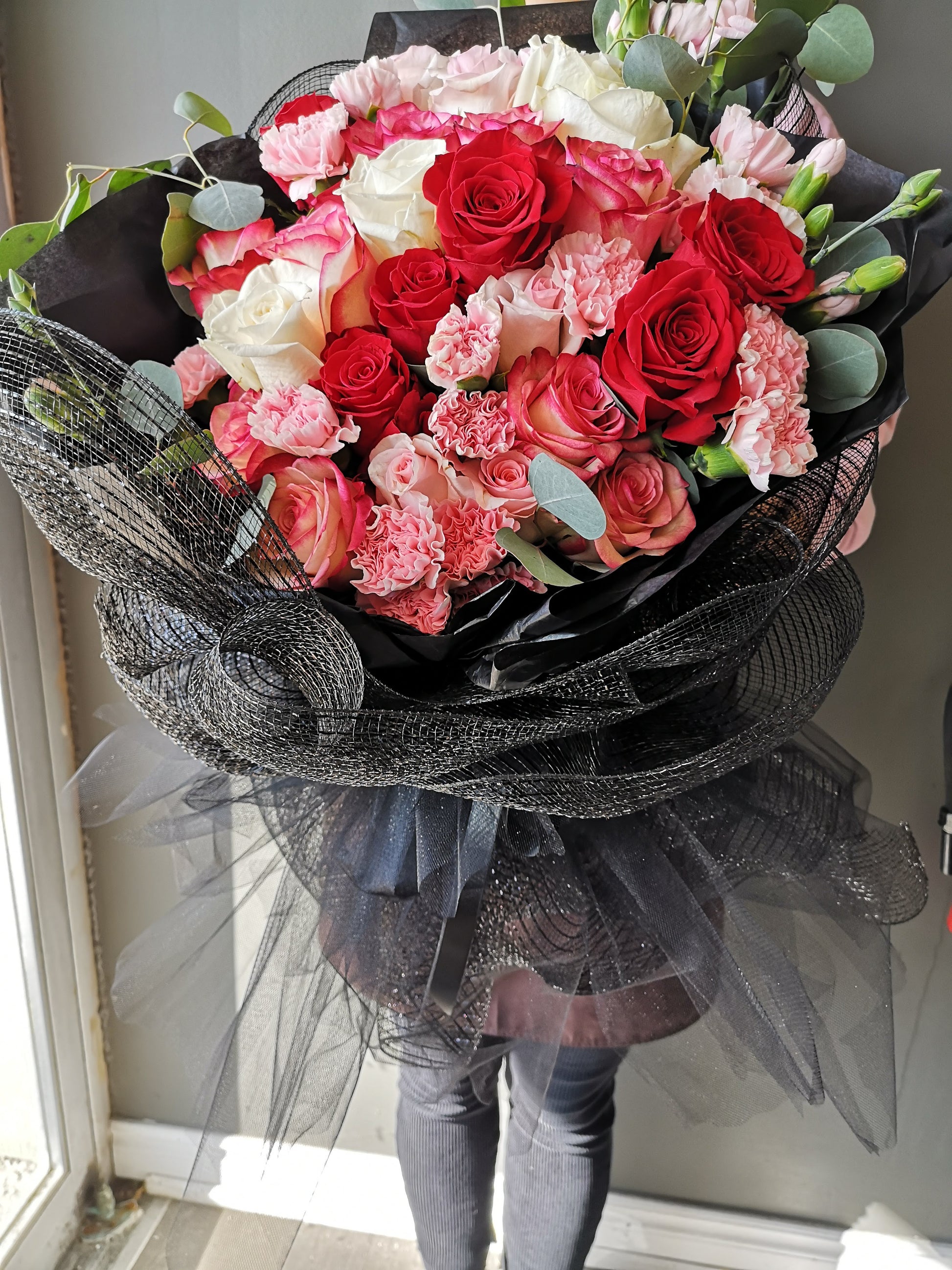 For Flower bouquet, After received, unwrap paper, cut stems around 1 inch diagonally, add half bag flower food powder mixed with water, change water every 2-3 days, re-cut stems regularly, place them in no direct sunlight or extreme hot area. For Flower Foam arrangement, add mixed flower food powered water every two days keep the foam wet